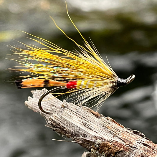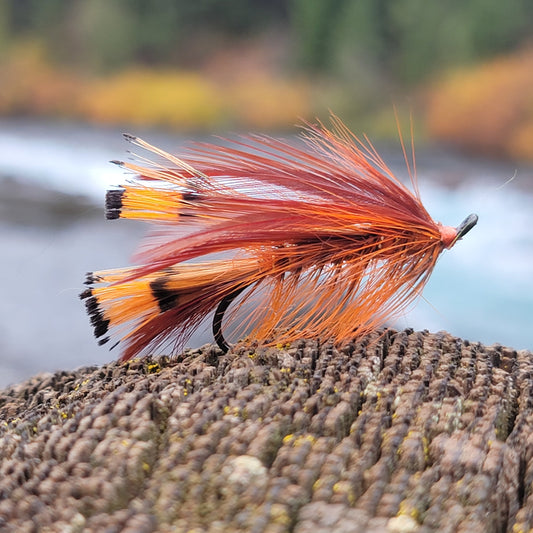 At Golden Tippet, we understand the thrill of pursuing the mighty salmon, and our collection of salmon flies is crafted to meet the challenge of these powerful fish. Our flies are hand tied with passion and precision, using vibrant feathers, robust hooks, and strong, reliable threads that withstand the vigorous battles salmon are known for.