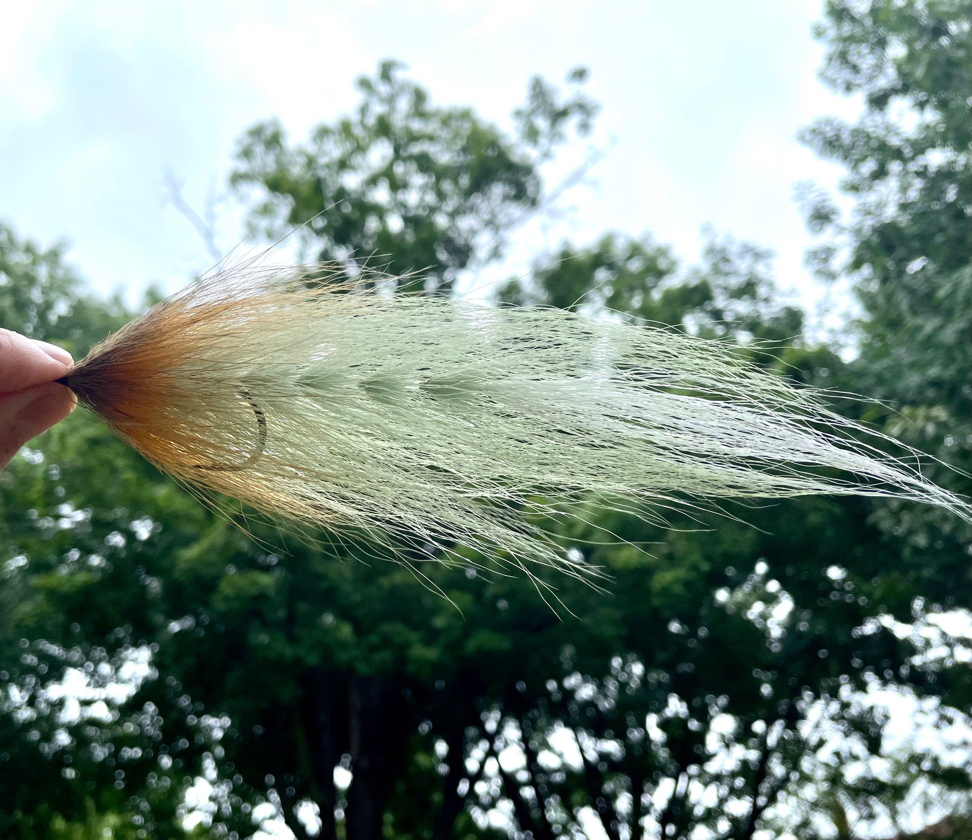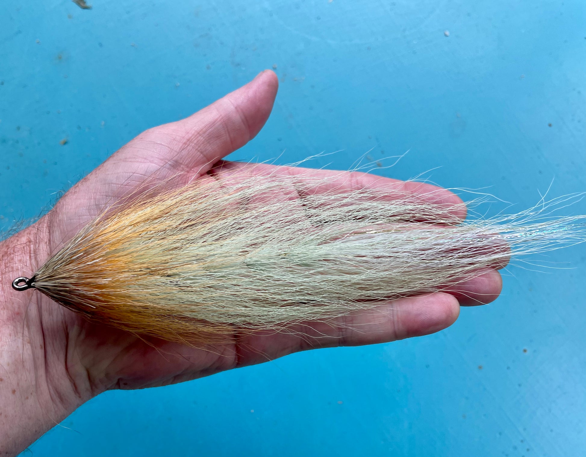 The body of the Beast Fly is composed of natural bucktail, to create a large, voluminous profile that mimics larger baitfish or other prey. Despite its size, the clever use of these materials ensures the fly remains lightweight and easy to cast.