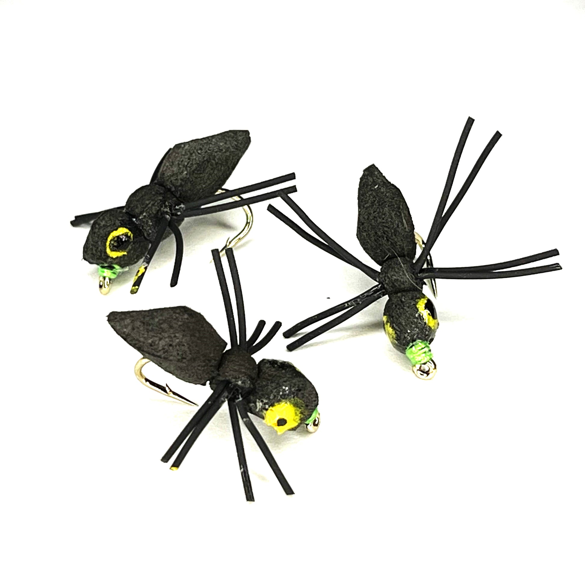 The "Big Eye Sponge Spider" is a foam terrestrial fly designed to imitate large spiders that fall onto the water. It was created by fly tier Ed Engle to target selective trout.