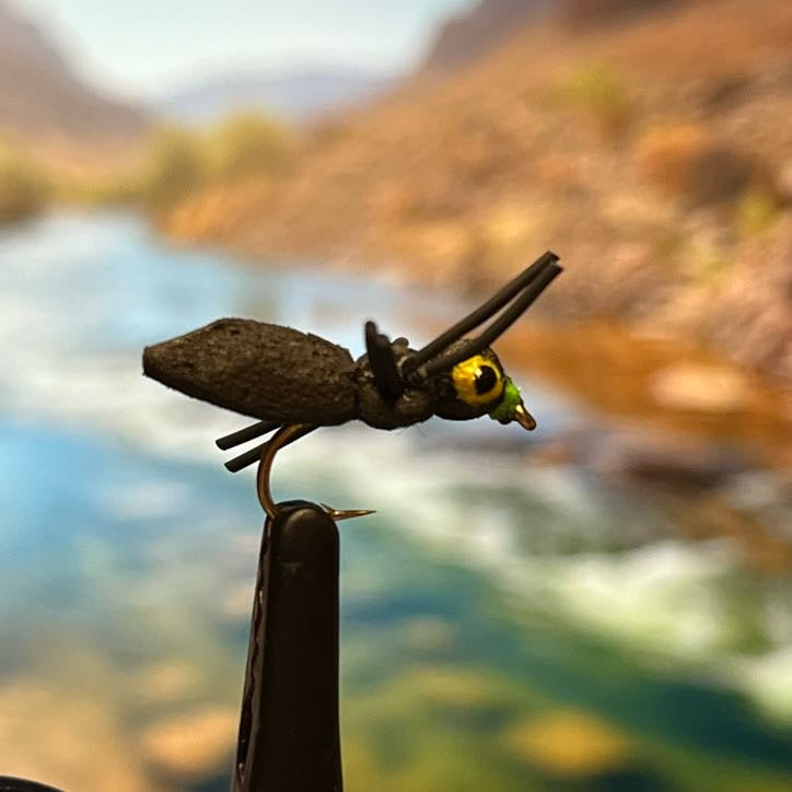 The Big Eye Sponge Spider has become a popular fly for anglers targeting selective trout that are feeding on terrestrial insects like spiders that fall onto the water's surface. It's easy to track and floats well.