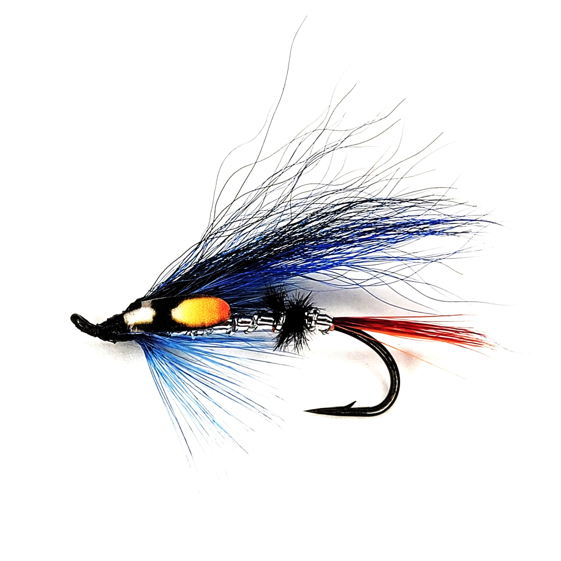 Crafted on a sturdy size #4 hook, the "Blue Highlander" is robust enough to handle the most ferocious of takes yet refined enough to ensure a delicate presentation. The hook is meticulously selected for its high carbon content, providing unparalleled strength and a needle-sharp point that ensures quick, deep penetration when a salmon strikes.