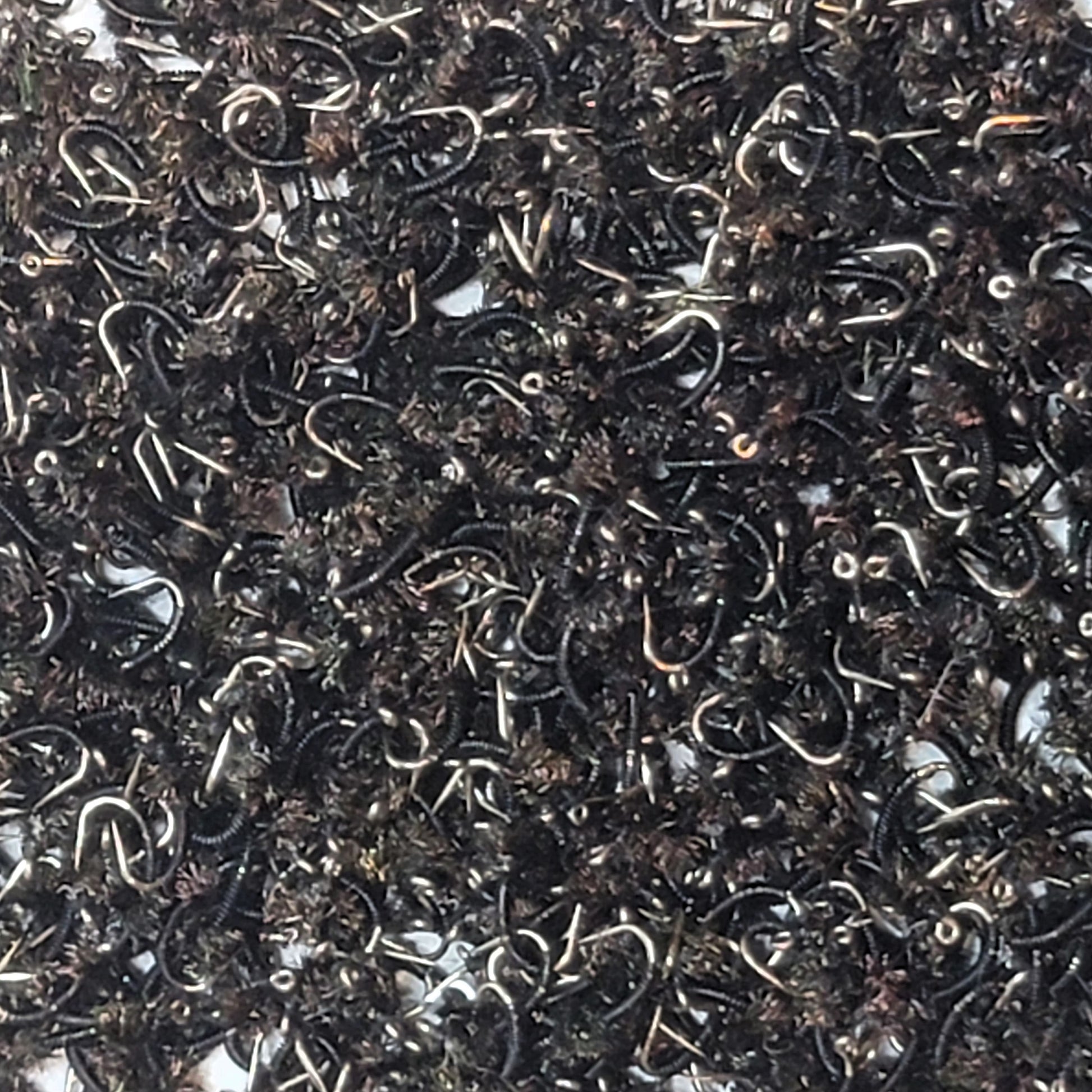 Hook: The Black Brassie is usually tied on a standard nymph hook, with sizes ranging from about #16 to #22, suitable for matching various aquatic insects, particularly midge larvae. The Golden Tippet Brassie is tied on a #16.