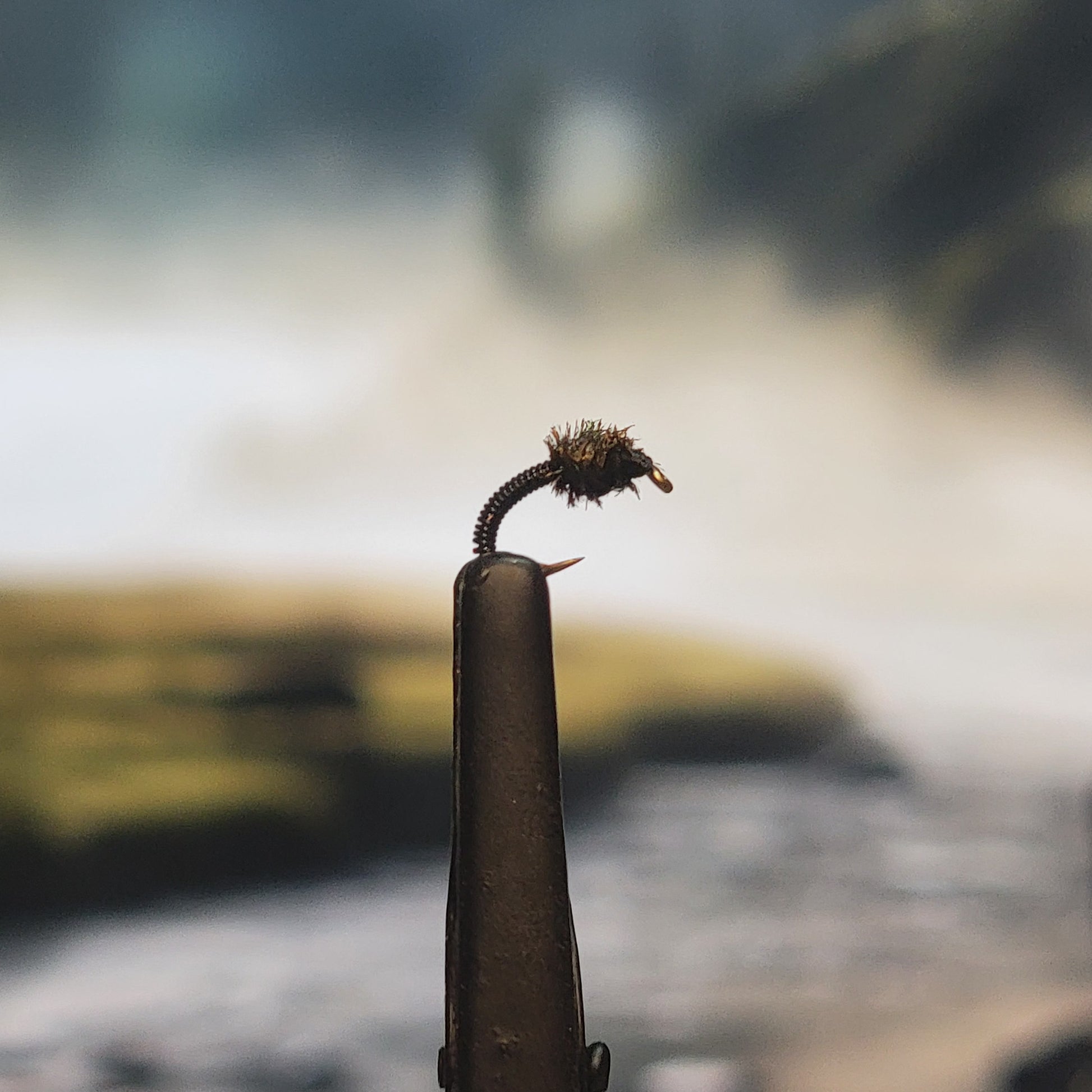 The Black Brassie is a simple yet effective fly pattern that is primarily used for trout fishing. It is a variation of the traditional Brassie, which is known for its wire-wrapped body that sinks quickly and reflects light to attract fish. The Black Brassie, as the name suggests, uses black wire to give the fly a darker, more subdued appearance.