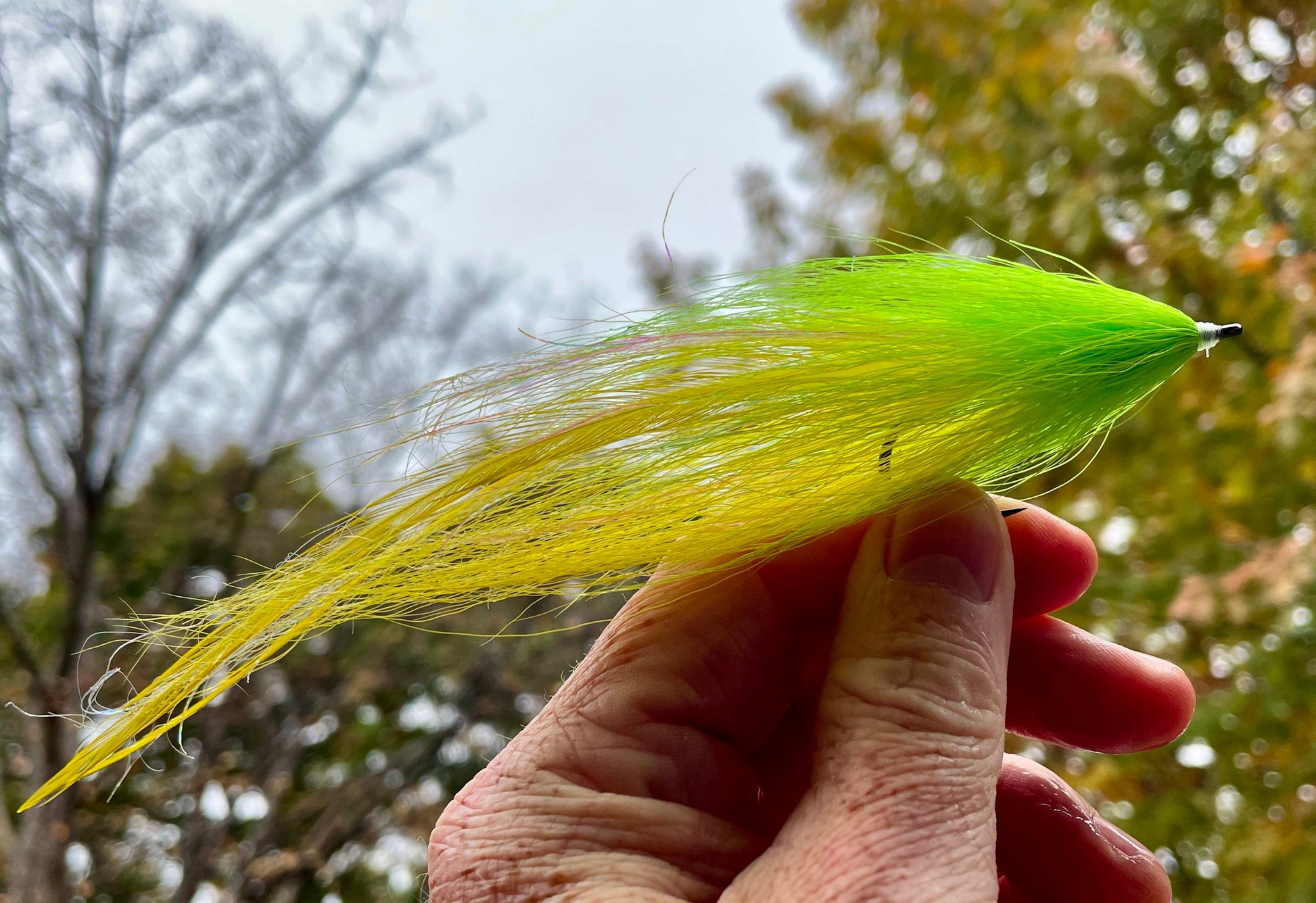 The fly features a long, slender profile designed to mimic the shape and movement of small baitfish. The bucktail body provides a pulsating action in the water that is irresistible to fish.