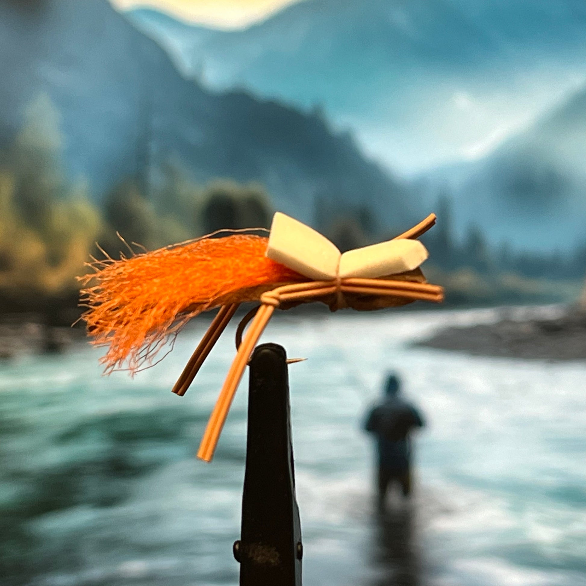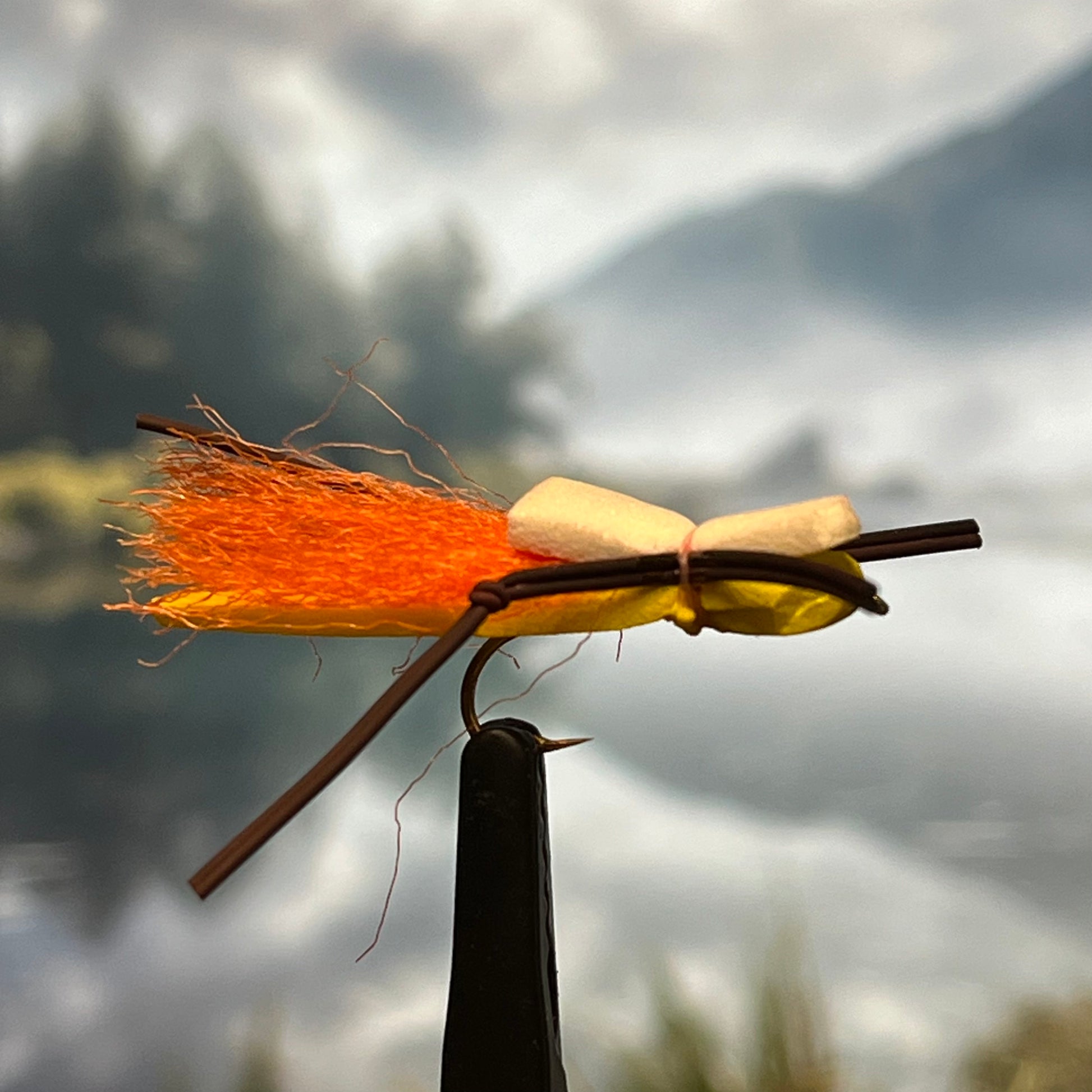 The Chaos Hopper is a foam terrestrial fly designed to imitate grasshoppers struggling on the water's surface. It was created in the early 2010s by fly tiers at Umpqua Feather Merchants.