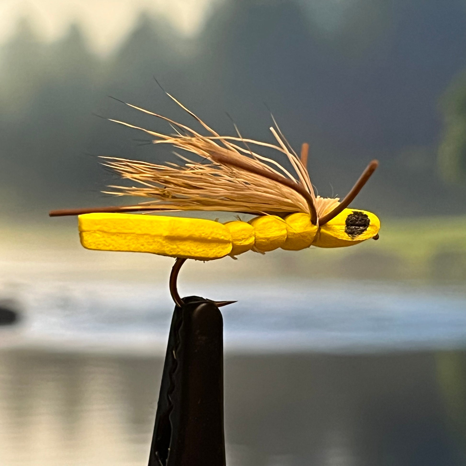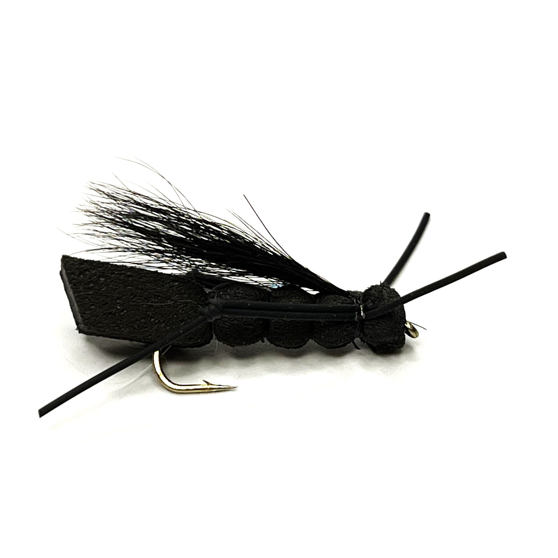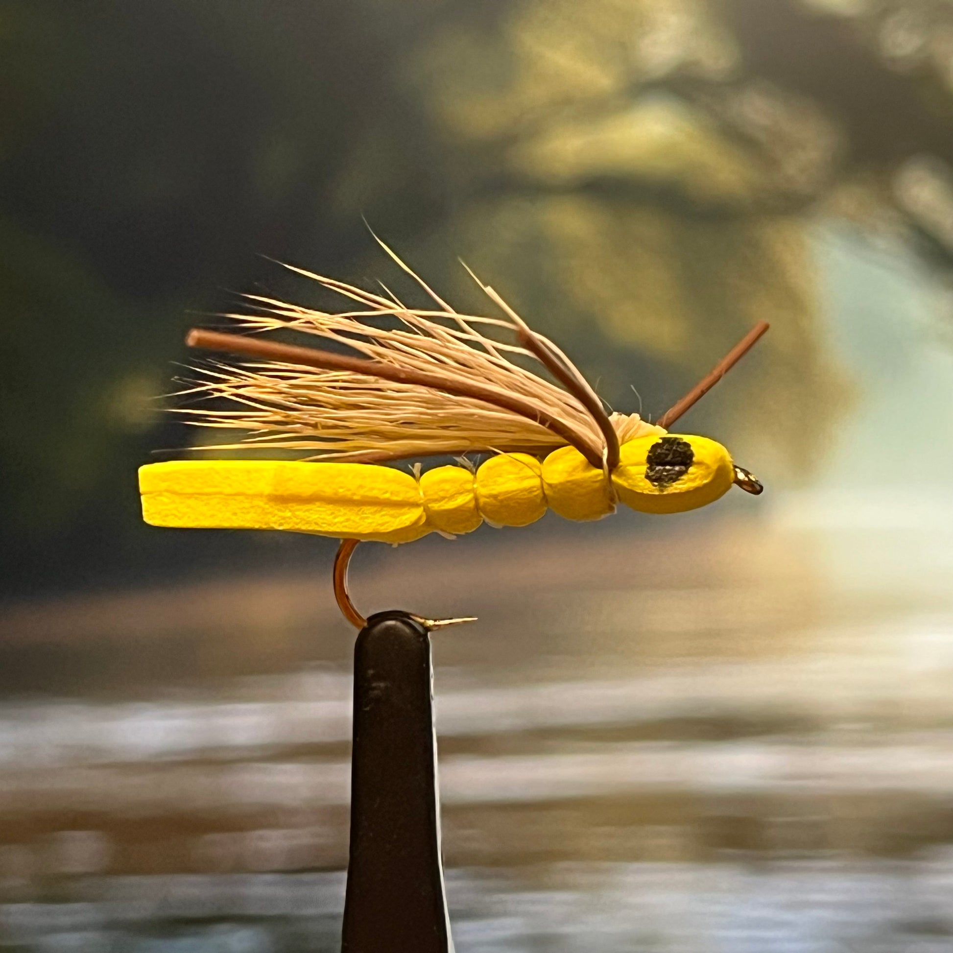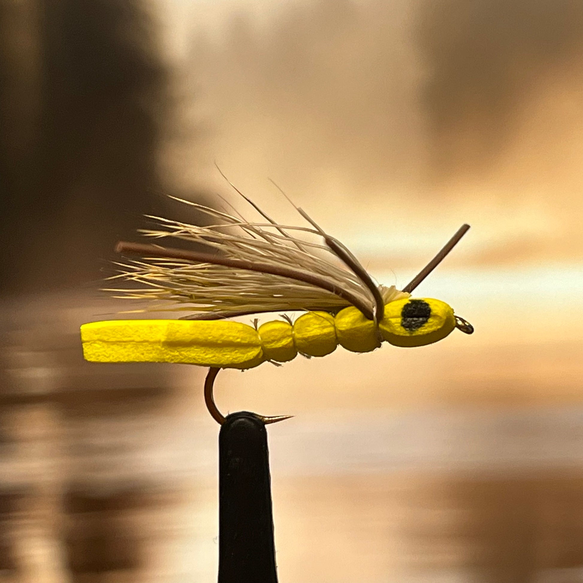 With its simple foam body and rubber legs, the Charlie Boy Hopper is easy to tie and very effective at mimicking a struggling grasshopper or cricket on the water's surface. It was first featured in Fly Fisherman magazine in 2002.