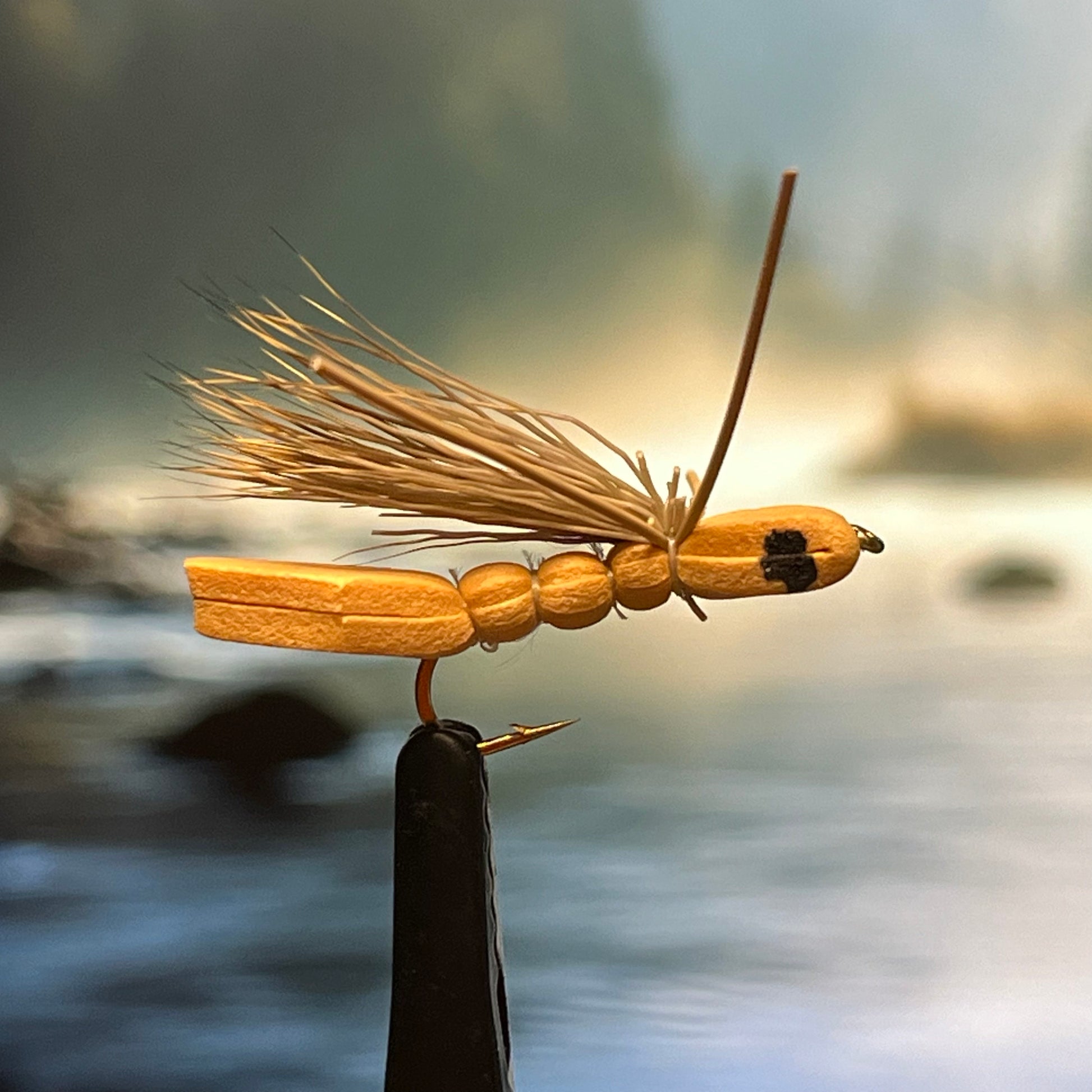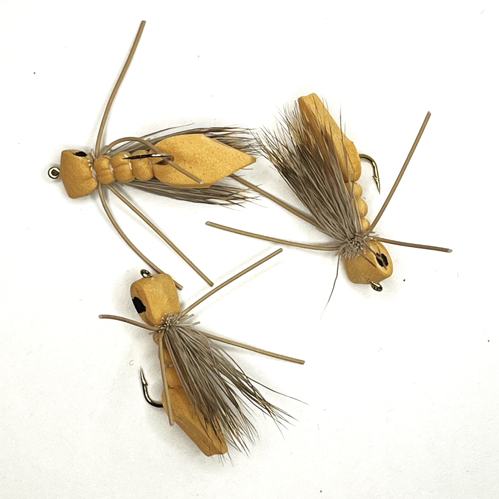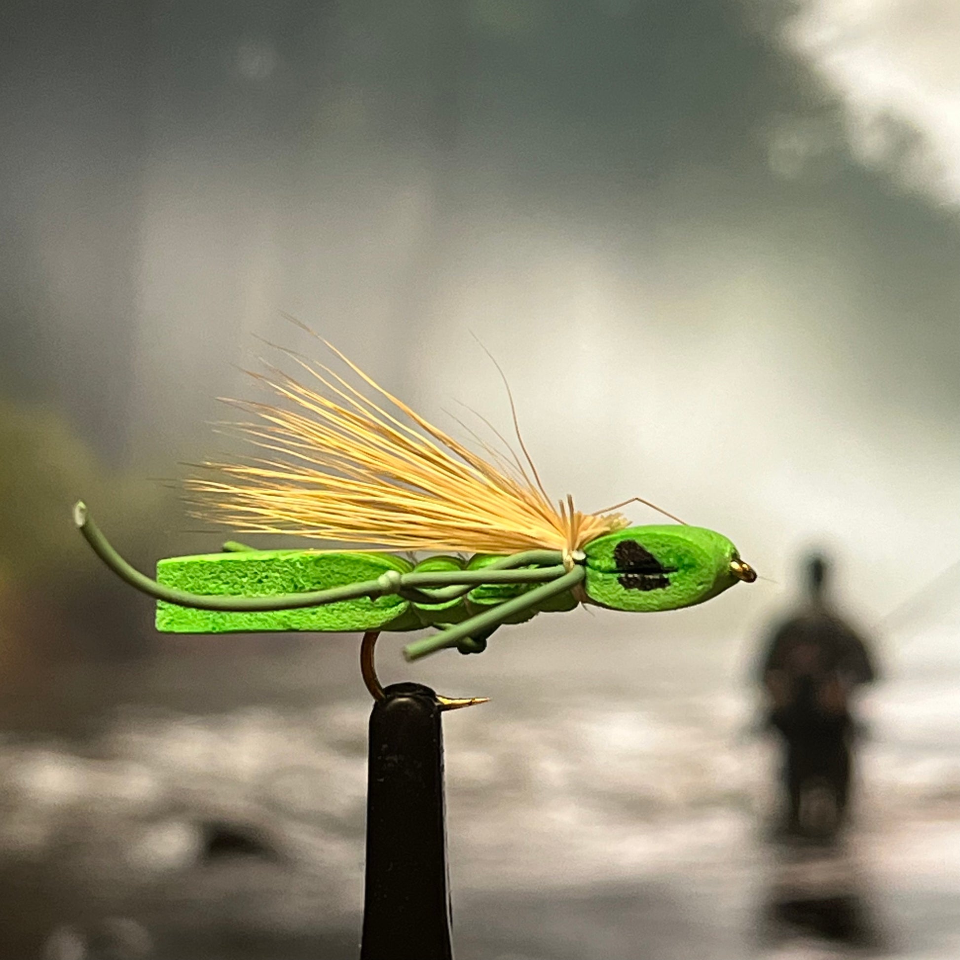With its simple foam body and rubber legs, the Charlie Boy Hopper is easy to tie and very effective at mimicking a struggling grasshopper or cricket on the water's surface. It was first featured in Fly Fisherman magazine in 2002.