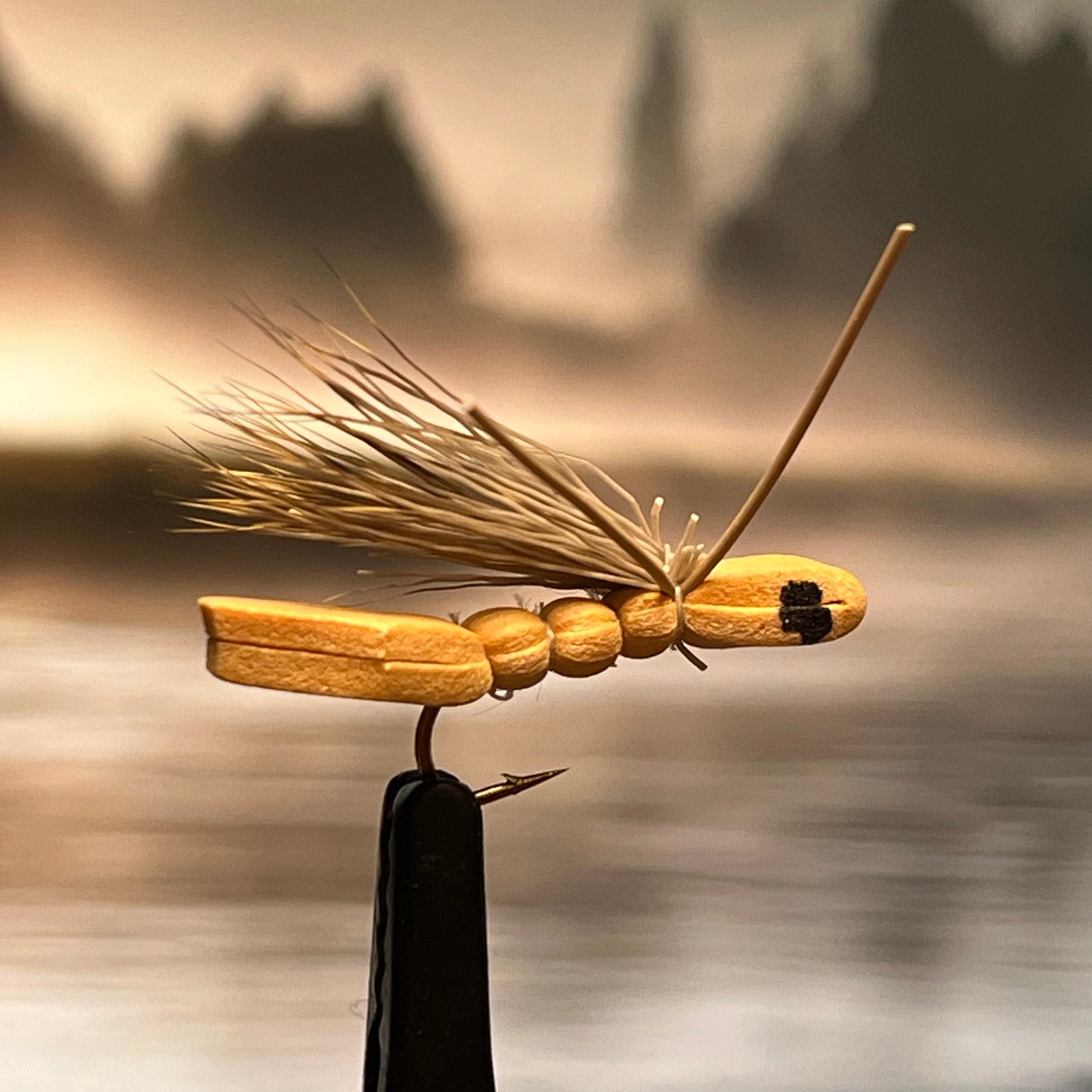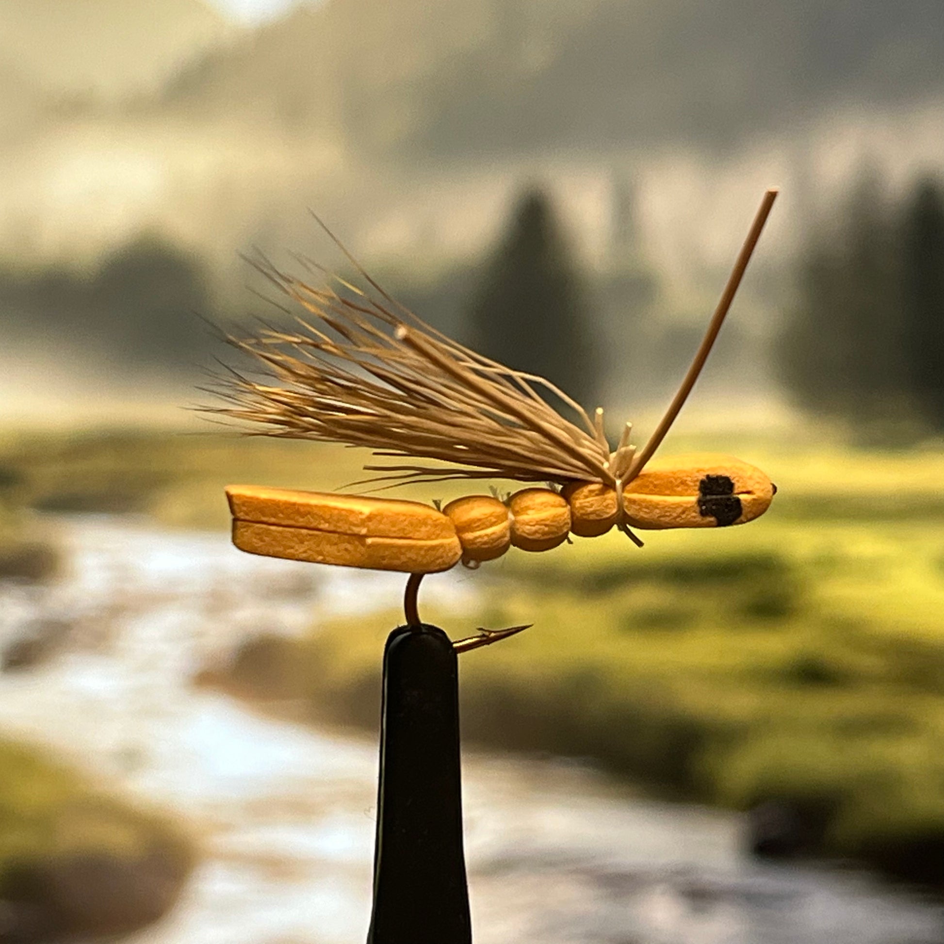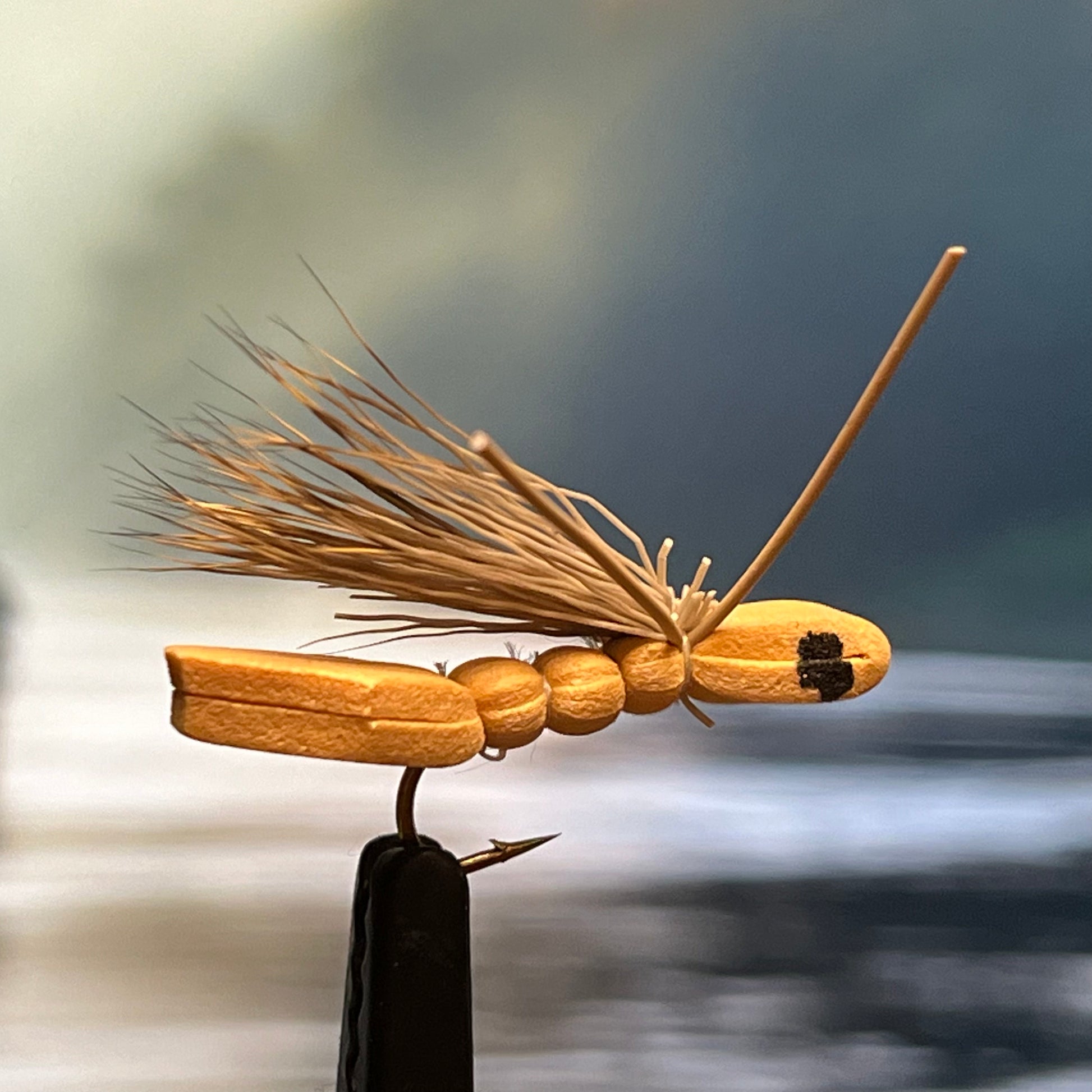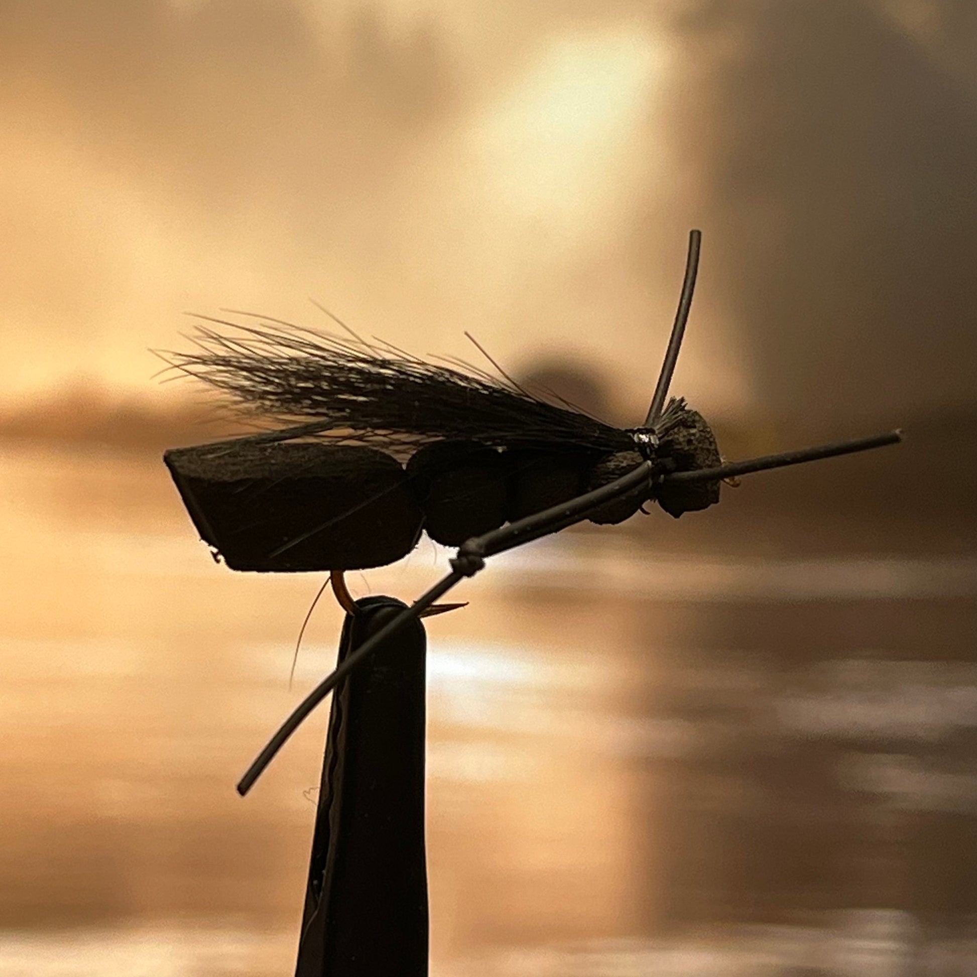 With its simple foam body and rubber legs, the Charlie Boy Hopper is easy to tie and very effective at mimicking a struggling grasshopper or cricket on the water's surface. It was first featured in Fly Fisherman magazine in 2002.