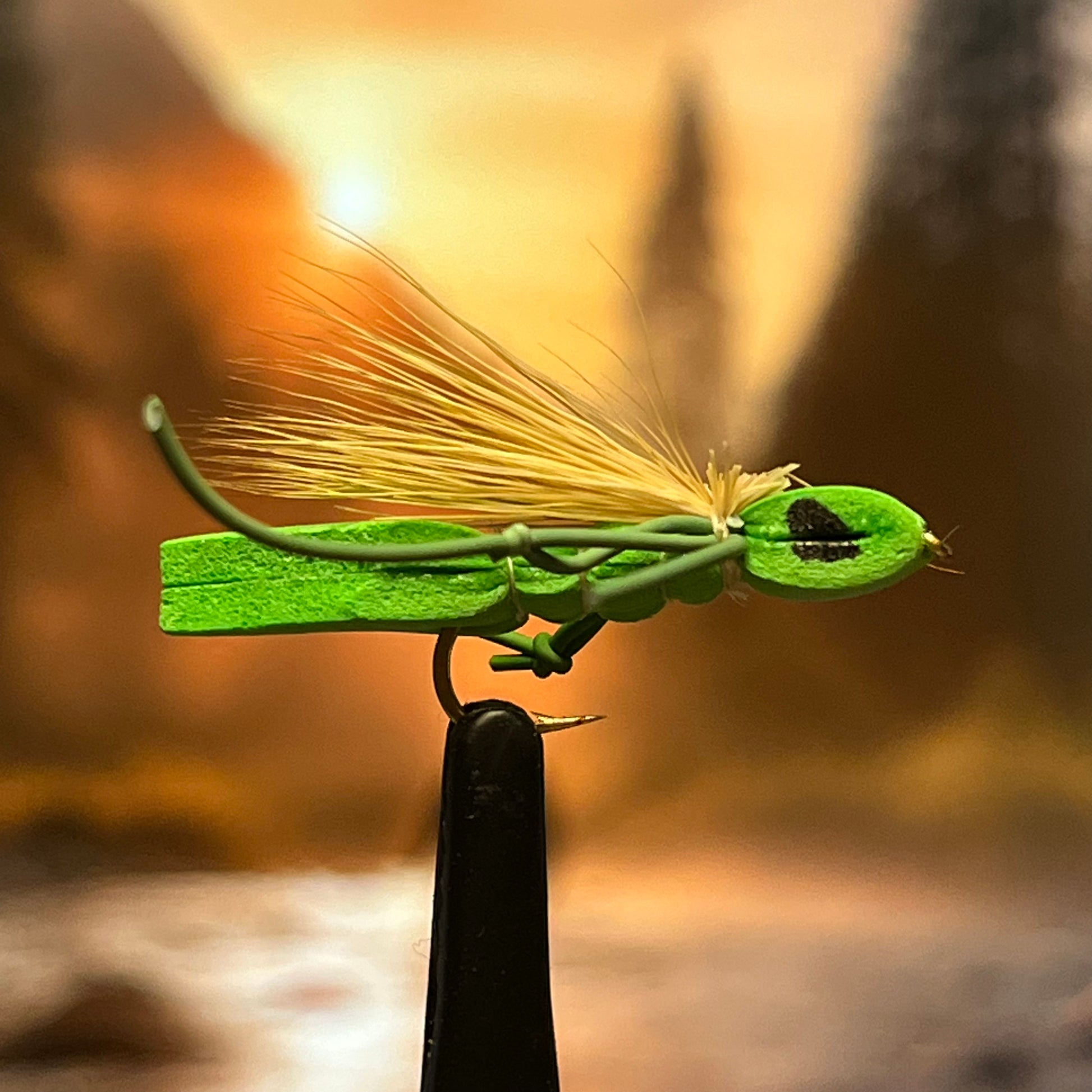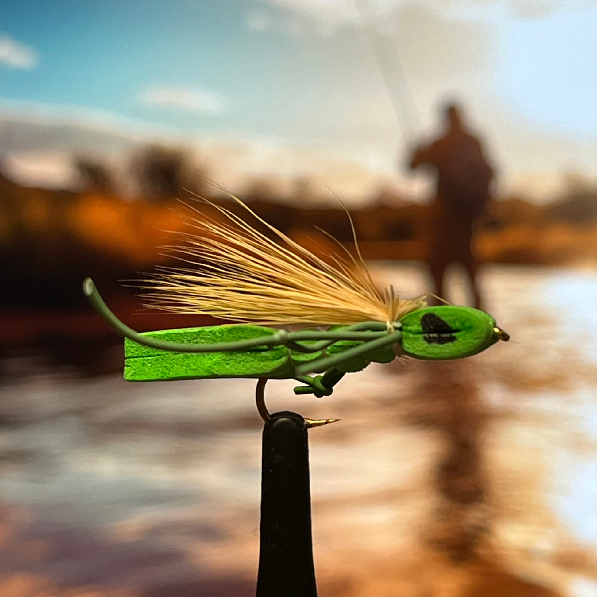 The Charlie Boy Hopper was designed in the early 2000s by Colorado fly tier Charlie Craven. Craven created it to specifically imitate the grasshoppers found along Colorado's rivers in late summer.