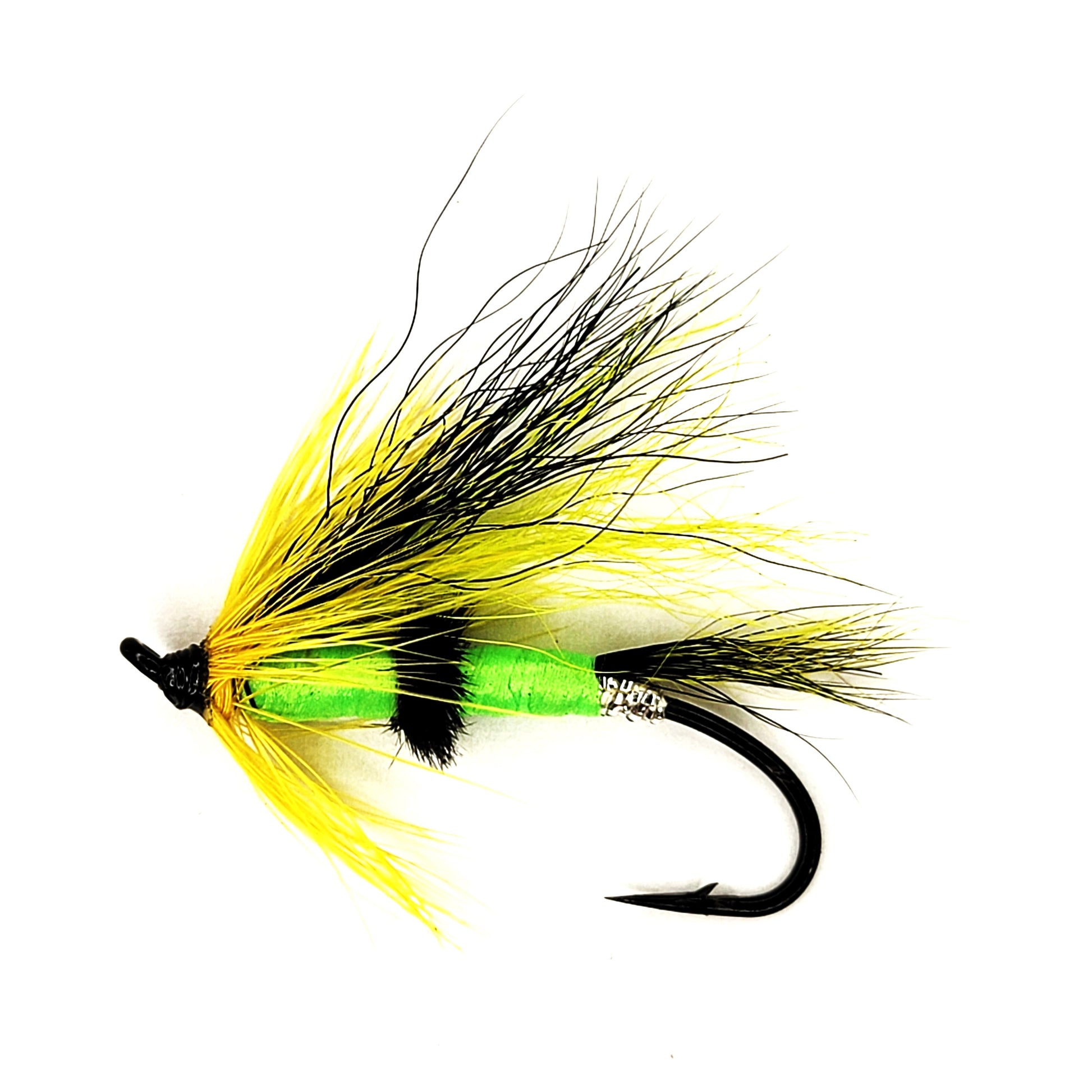 Introducing the "Colburn" Salmon Fly, size #4, a masterful blend of tradition and innovation, meticulously crafted to meet the demands of the modern salmon angler. This fly is not just a lure; it's a strategic tool designed to outwit the most elusive of salmon in challenging river conditions.