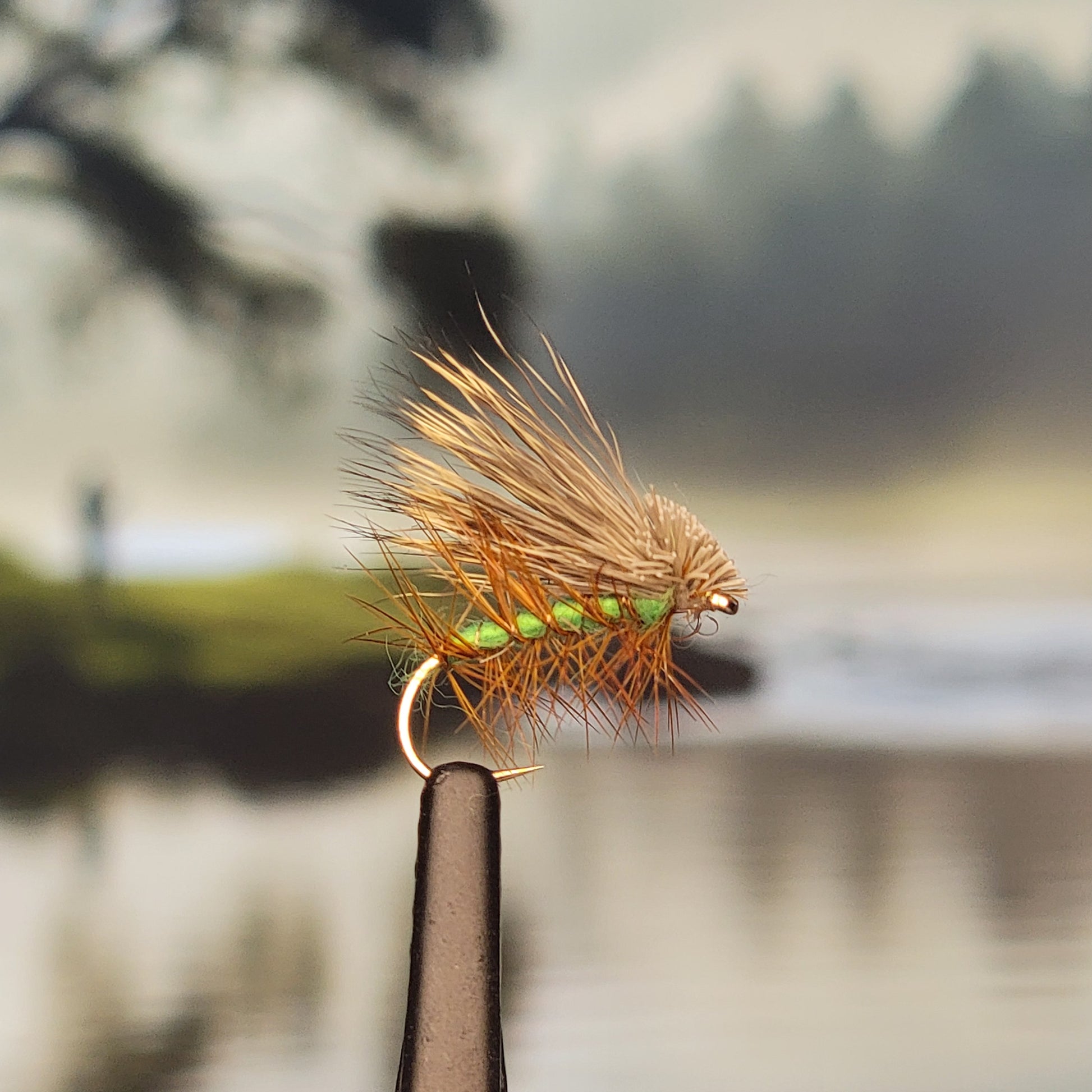 Body: The bodies are made from various types dubbing that matches the color of the natural caddisflies in the area. Common dubbing materials include hare's ear, rabbit, or synthetic blends. The body is dubbed onto the thread and then wrapped around the hook shank to create a tapered effect.