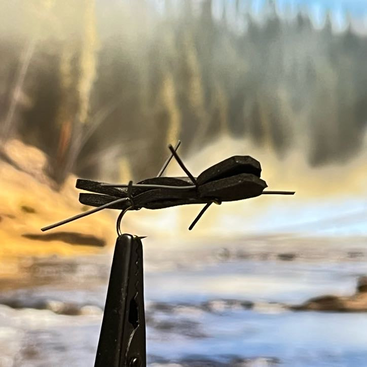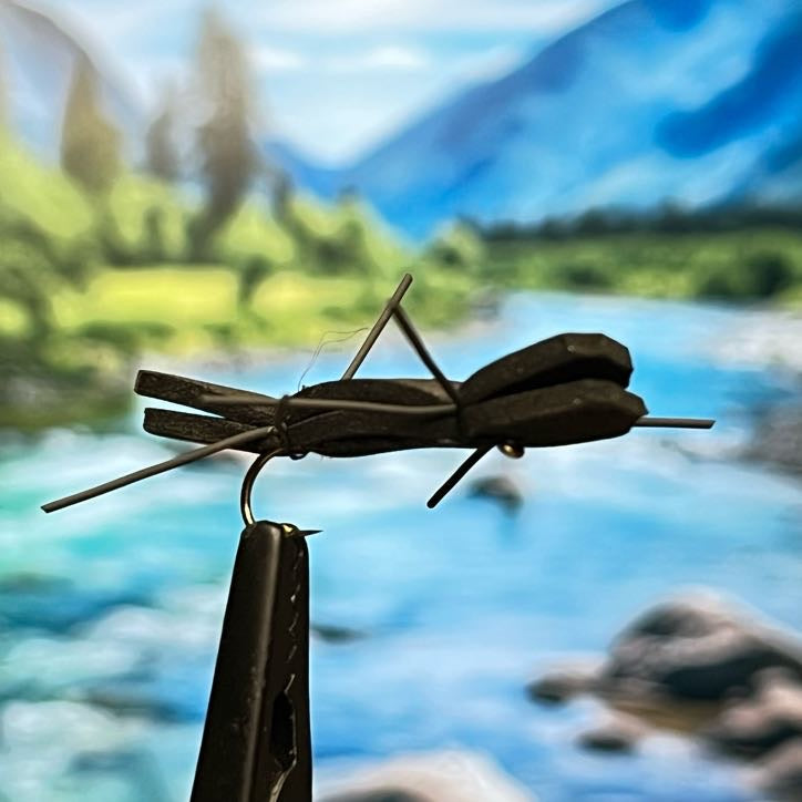 The "Foam Cricket" accurately imitates vulnerable terrestrial crickets that trout gorge on. Its realistic silhouette and dark coloration are irresistible to opportunistic fish.