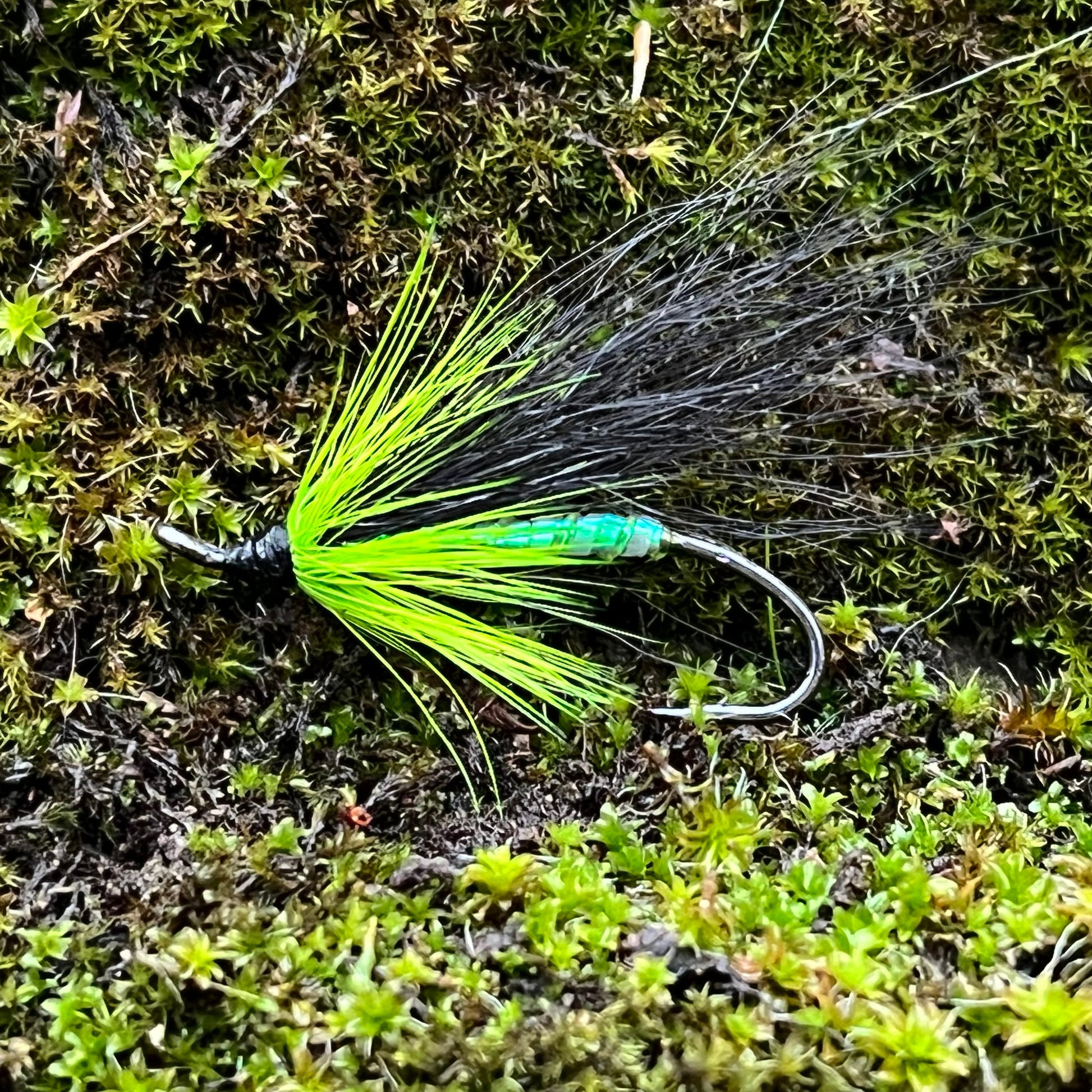 The Green Widow salmon fly in size #4 is a striking and effective pattern that has proven its worth on salmon rivers around the world. This fly is designed to be both visually appealing to anglers and irresistibly enticing to salmon.
