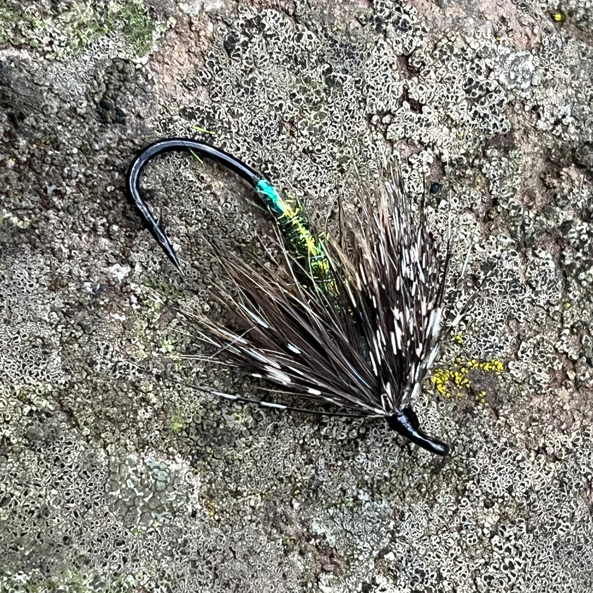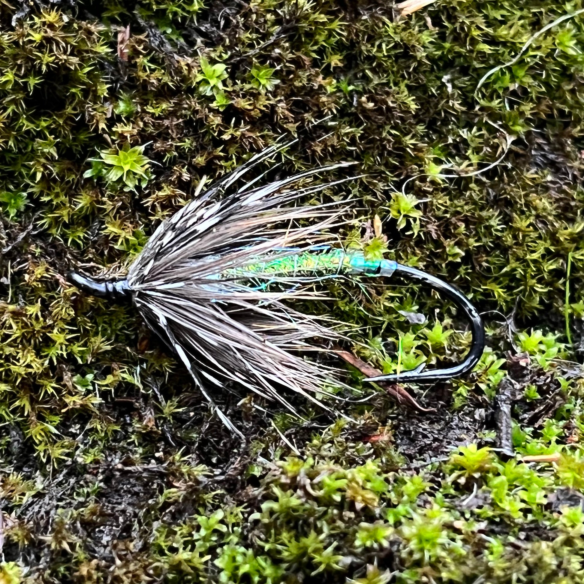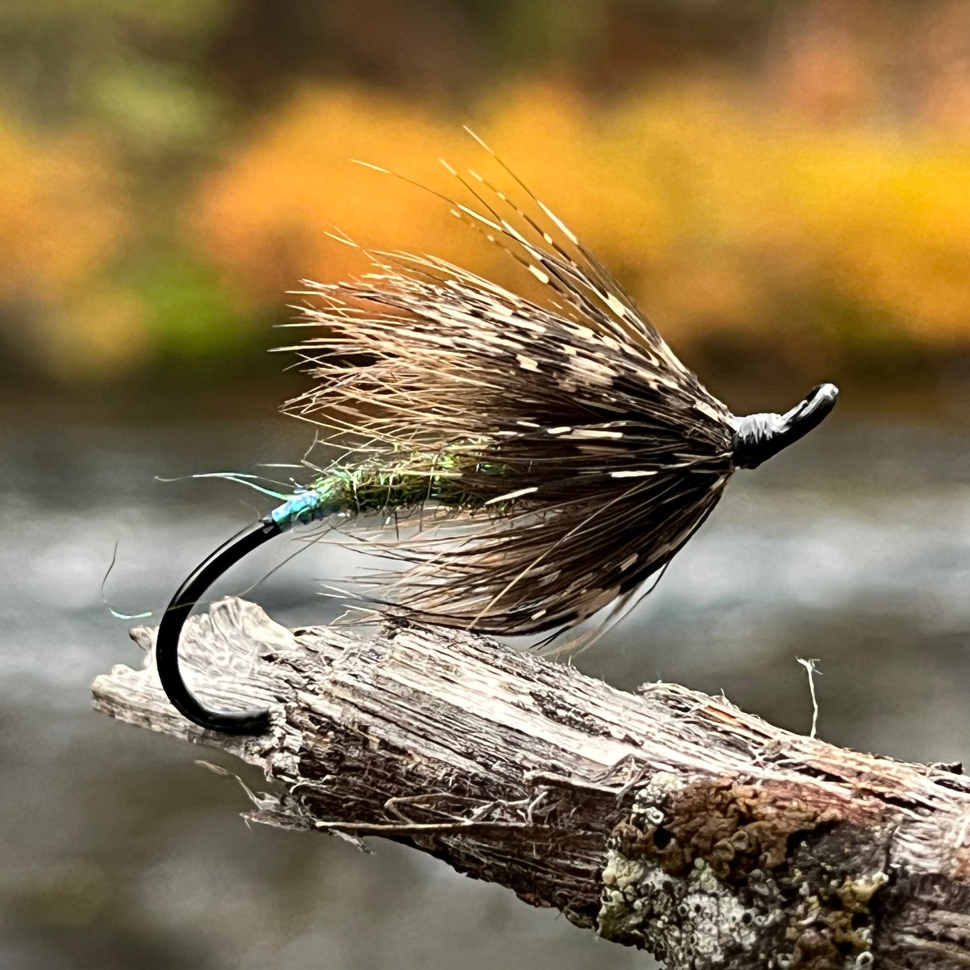 The "Henderson" is crowned with a whisper of hackle, meticulously chosen for its ability to simulate life beneath the surface. These fibers are more than just adornment; they breathe life into the fly, giving it a subtle animation that speaks to the instincts of the salmon, beckoning them to a dance as ancient as the rivers themselves.