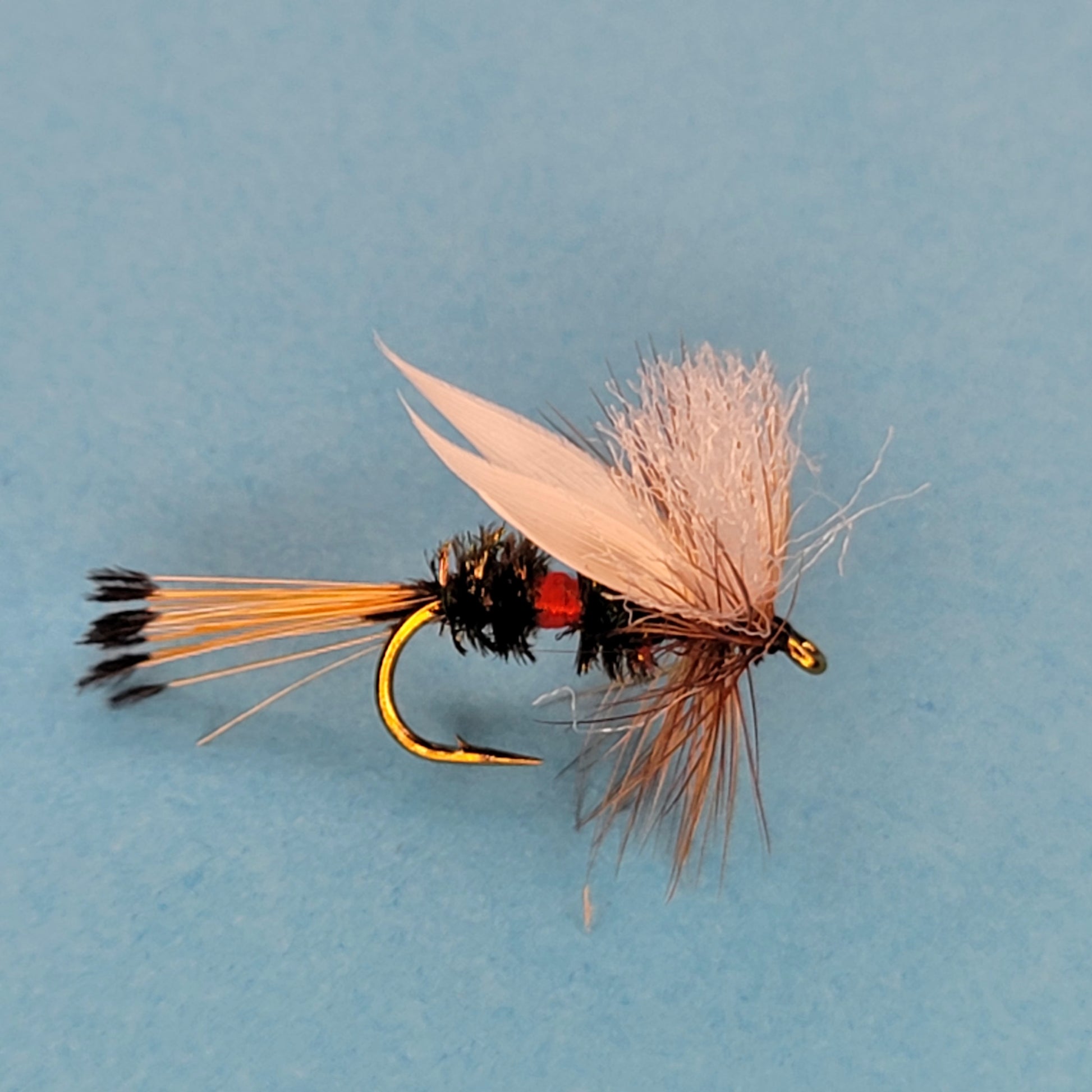 One of the distinguishing features of the Humpy fly is its wing, which is usually made from white calf hair or synthetic materials. The wing is tied upright and divided, giving the fly a distinct silhouette and making it easy for anglers to track its position on the water.
