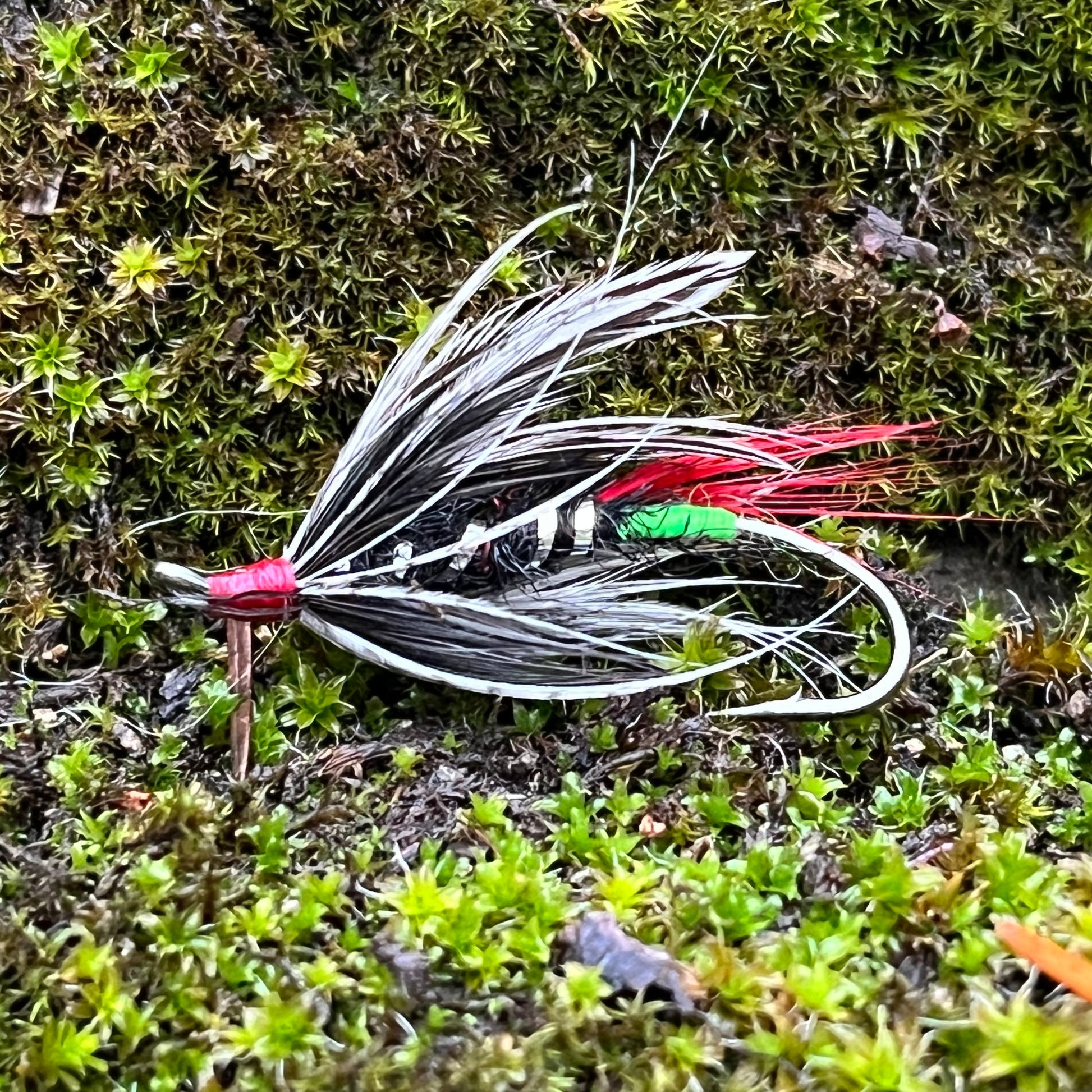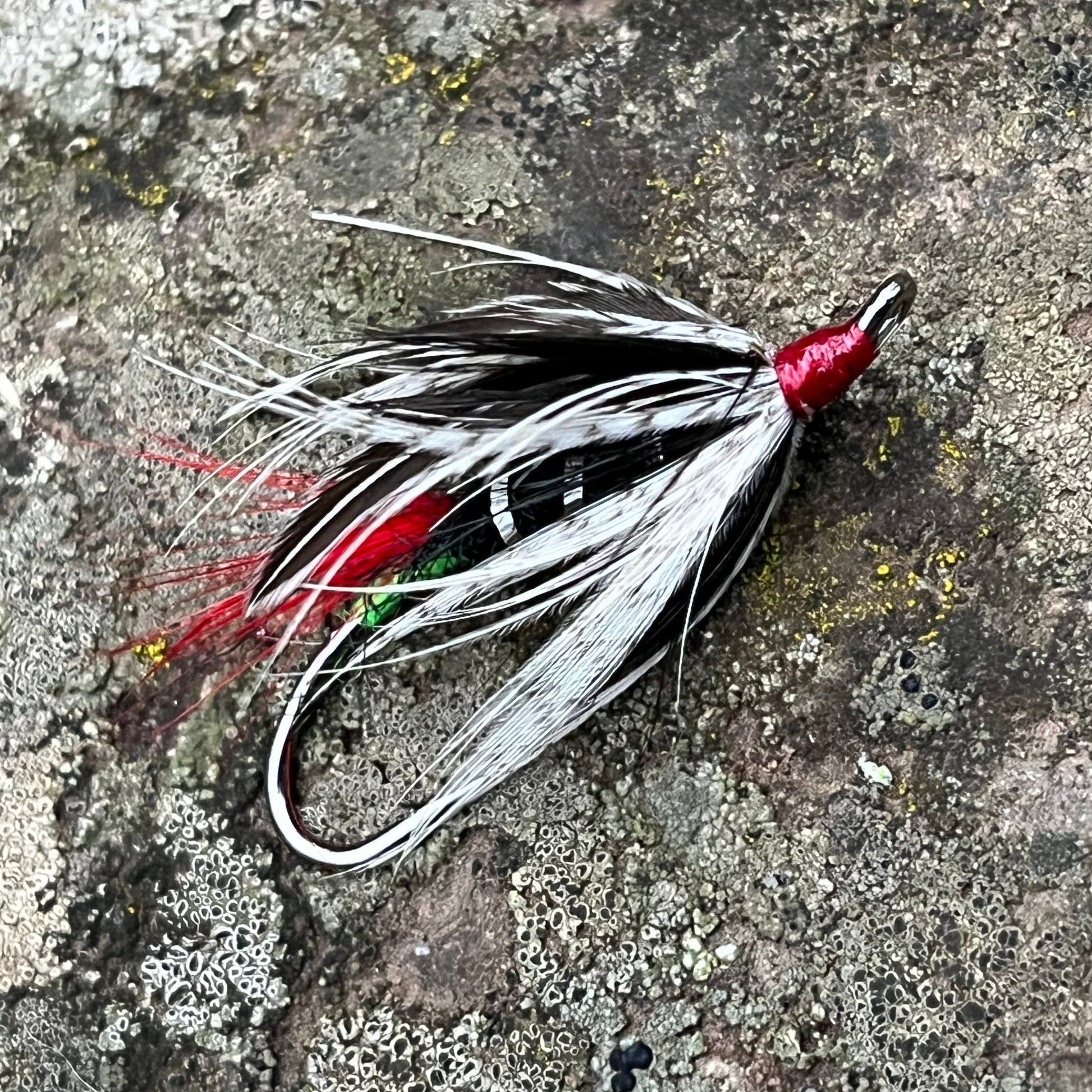 In summary, the size #4 JC Demon salmon fly offers a compelling mix of dark and bright elements, accented with the iconic Jungle Cock feathers. Its traditional design continues to be celebrated for its ability to tempt even the most discerning salmon.