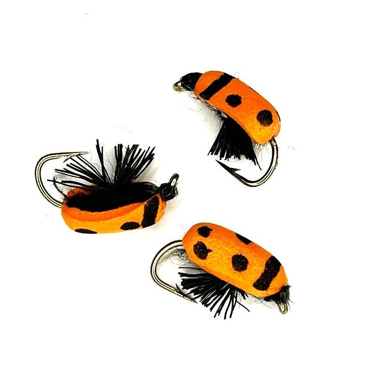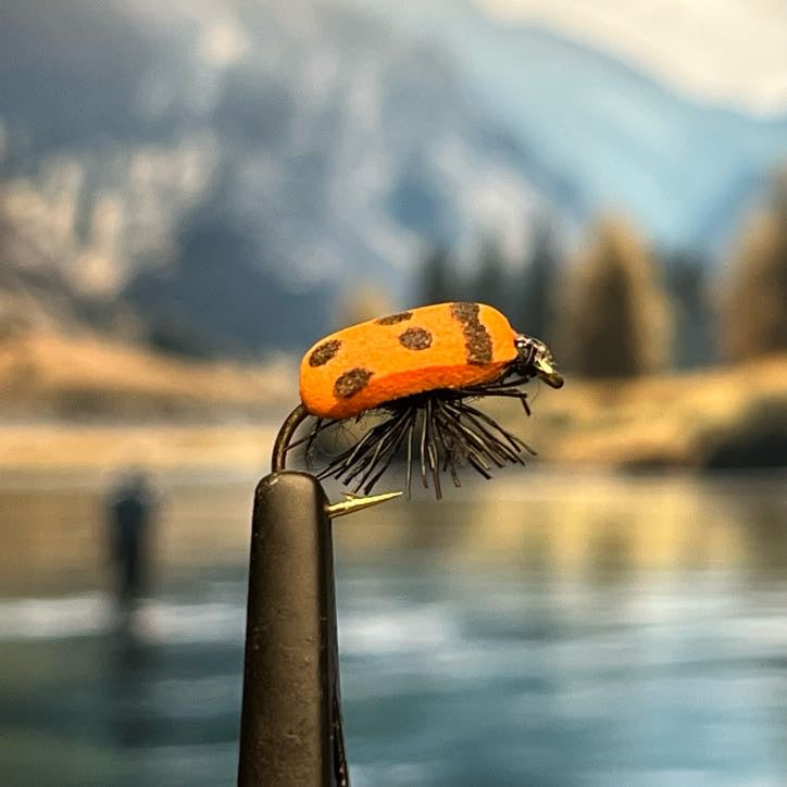 Tied from buoyant foam that suspends lightly on the surface, tempting wary trout to strike. The red body and black polka dots match natural lady bugs.
