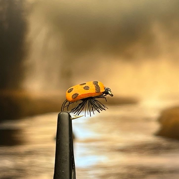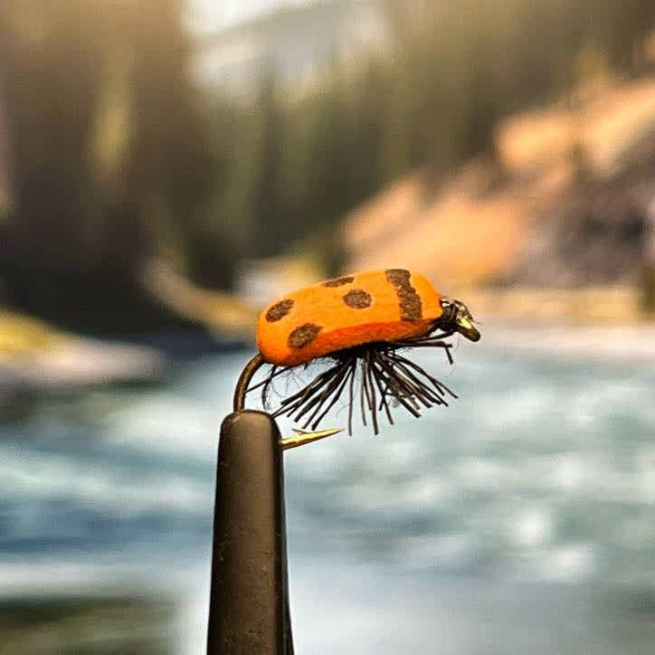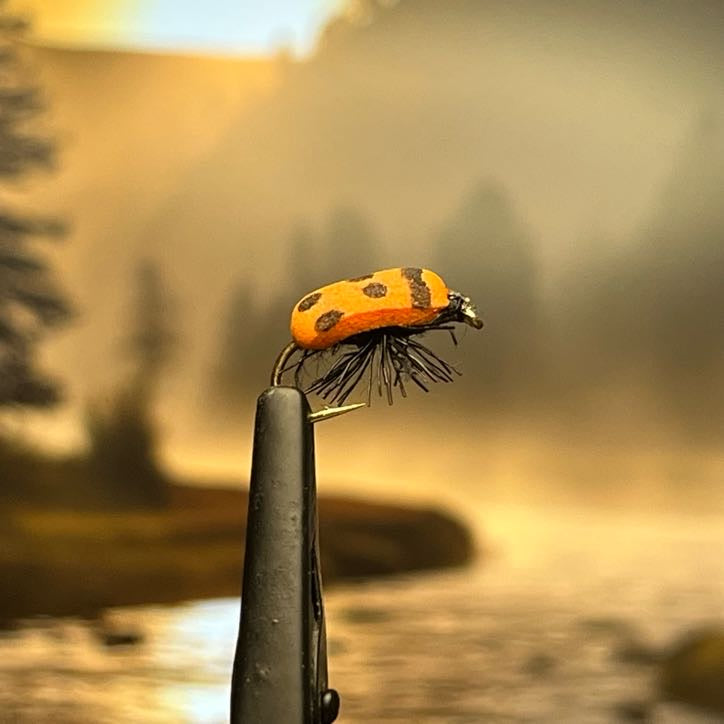 Drift the KR Lady Bug when you see lady bugs near the water. It perfectly matches these bright beetles that trout gorge on as tasty snacks.