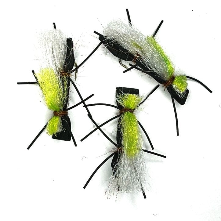 Great for fishing solo when small beetles are blown onto the water. The hi-vis chartreuse foam body is extremely visible and easy to track.
