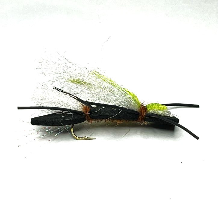 Tied from buoyant foam that suspends lightly in the surface film, tempting wary fish to strike. The chartreuse body stands out while fish target these bugs.