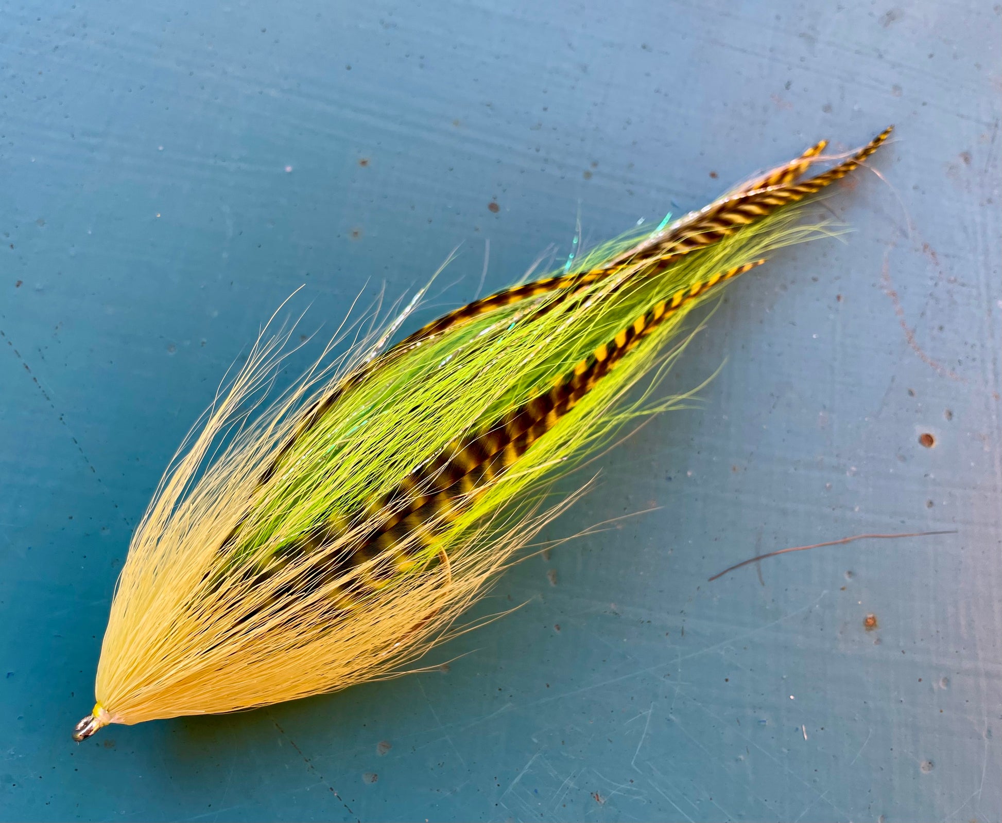Despite its large size, the hollow tie technique ensures this fly remains lightweight enough to cast with standard fly fishing gear. It's an excellent choice for species such as tarpon, striped bass, pike, or musky.