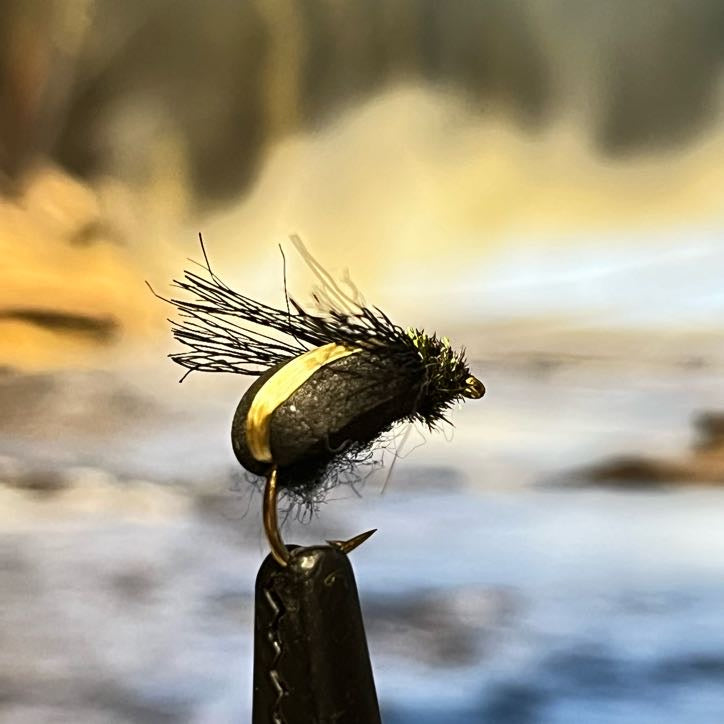 Great for fishing solo when beetle activity is high. The green foam body is easy to track on the water. Also useful as a hi-viz dry fly indicator.