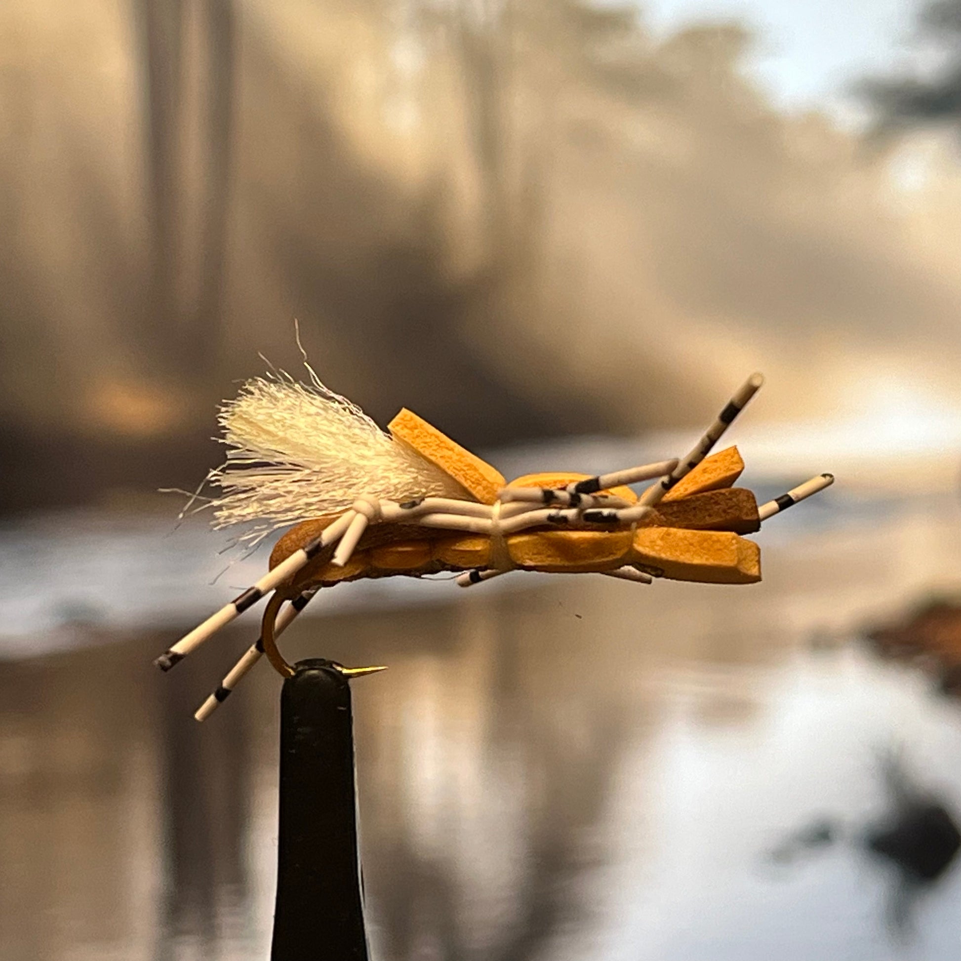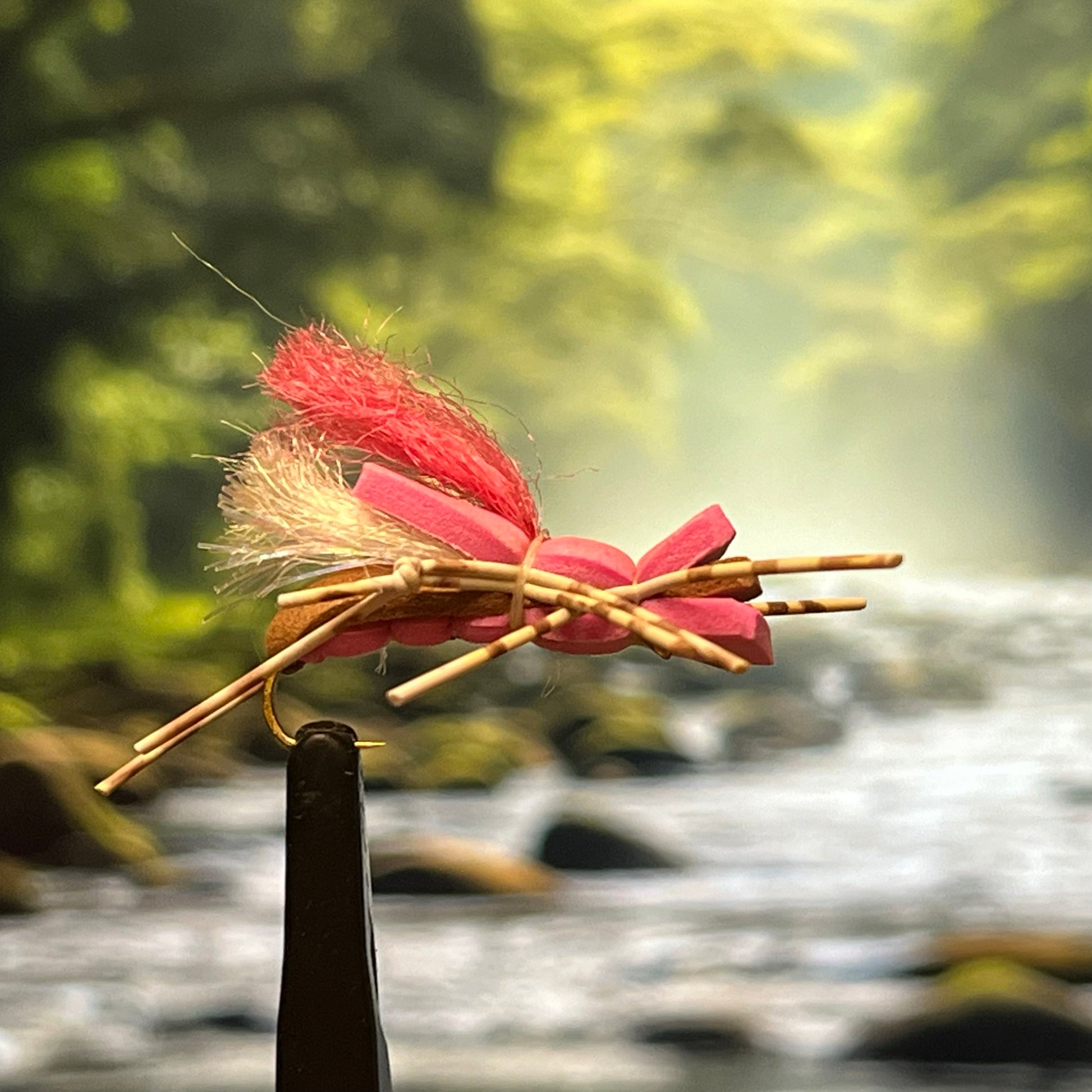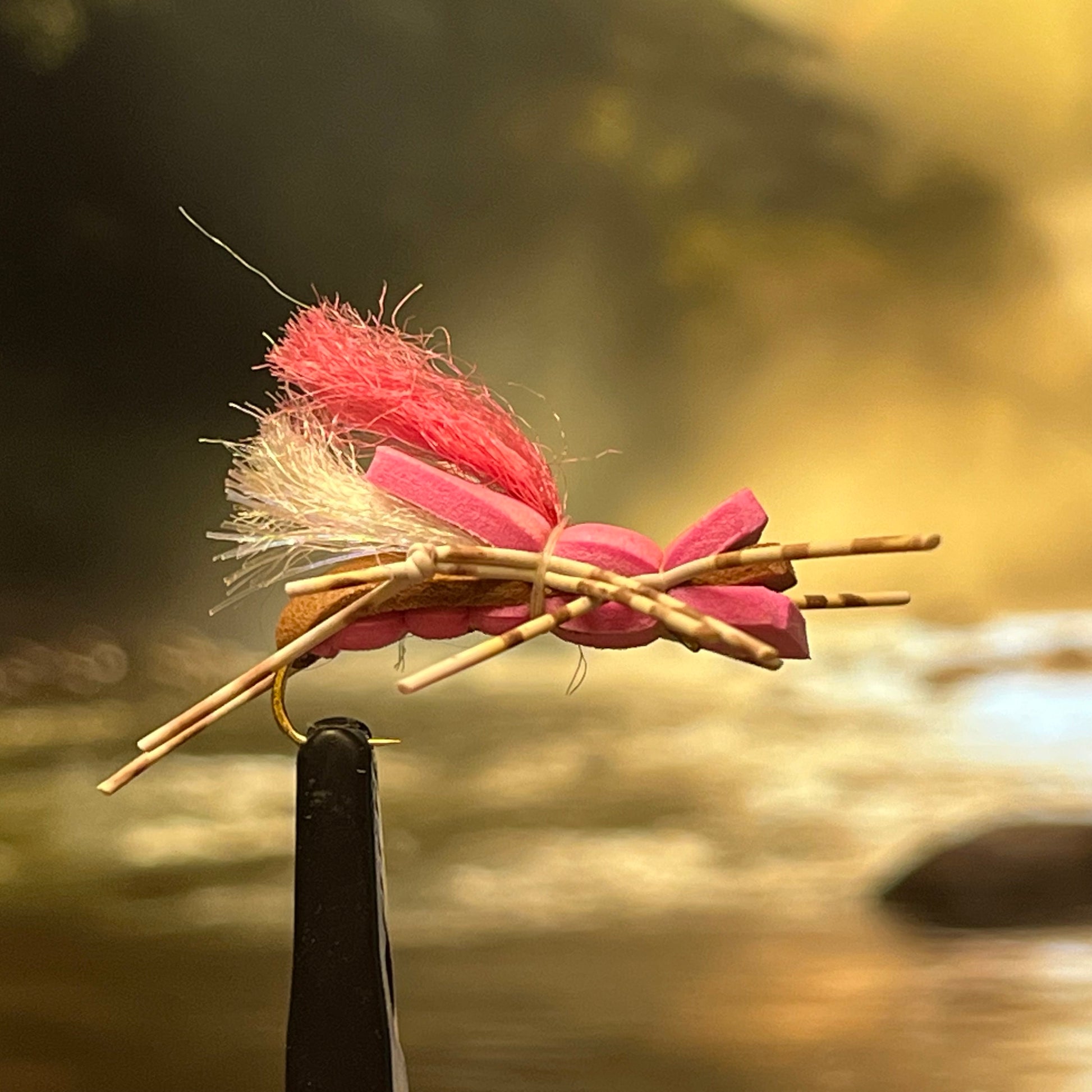 Offered in three enticing colors: tan, pink, and black. The stout foam legs kick realistically in the current while the segmented rubber legs add motion.